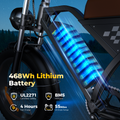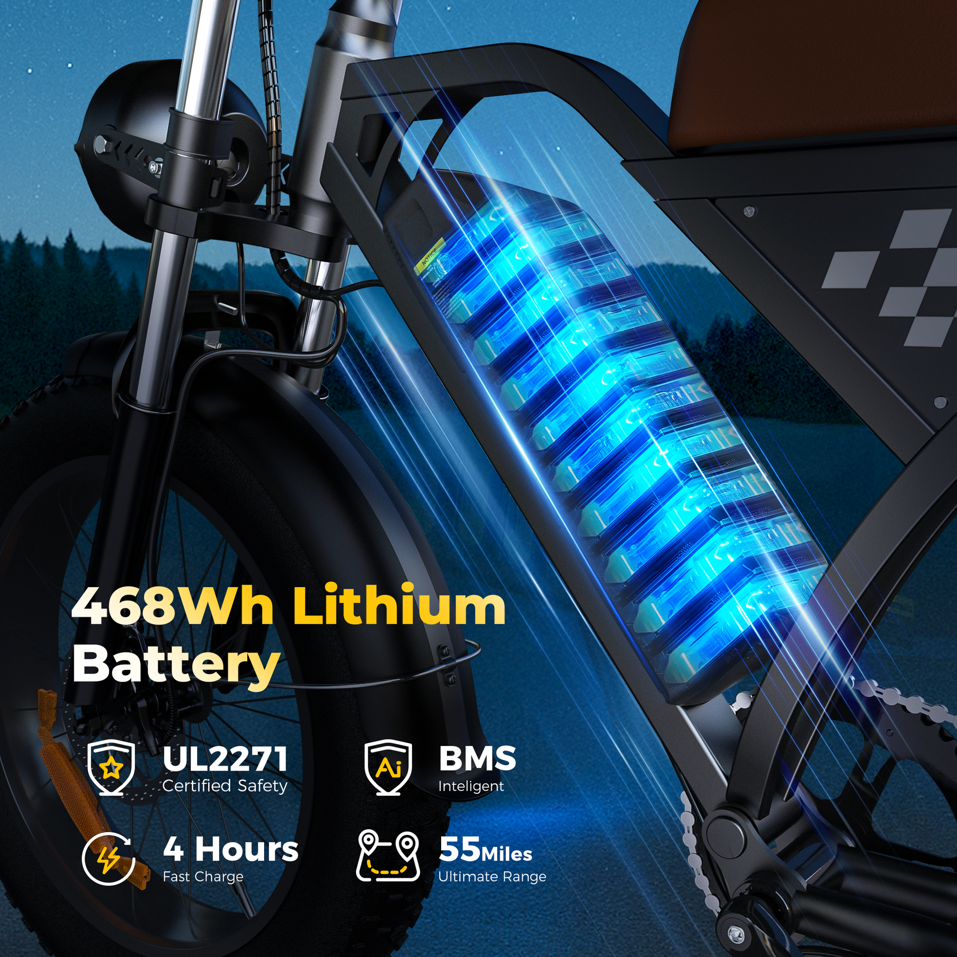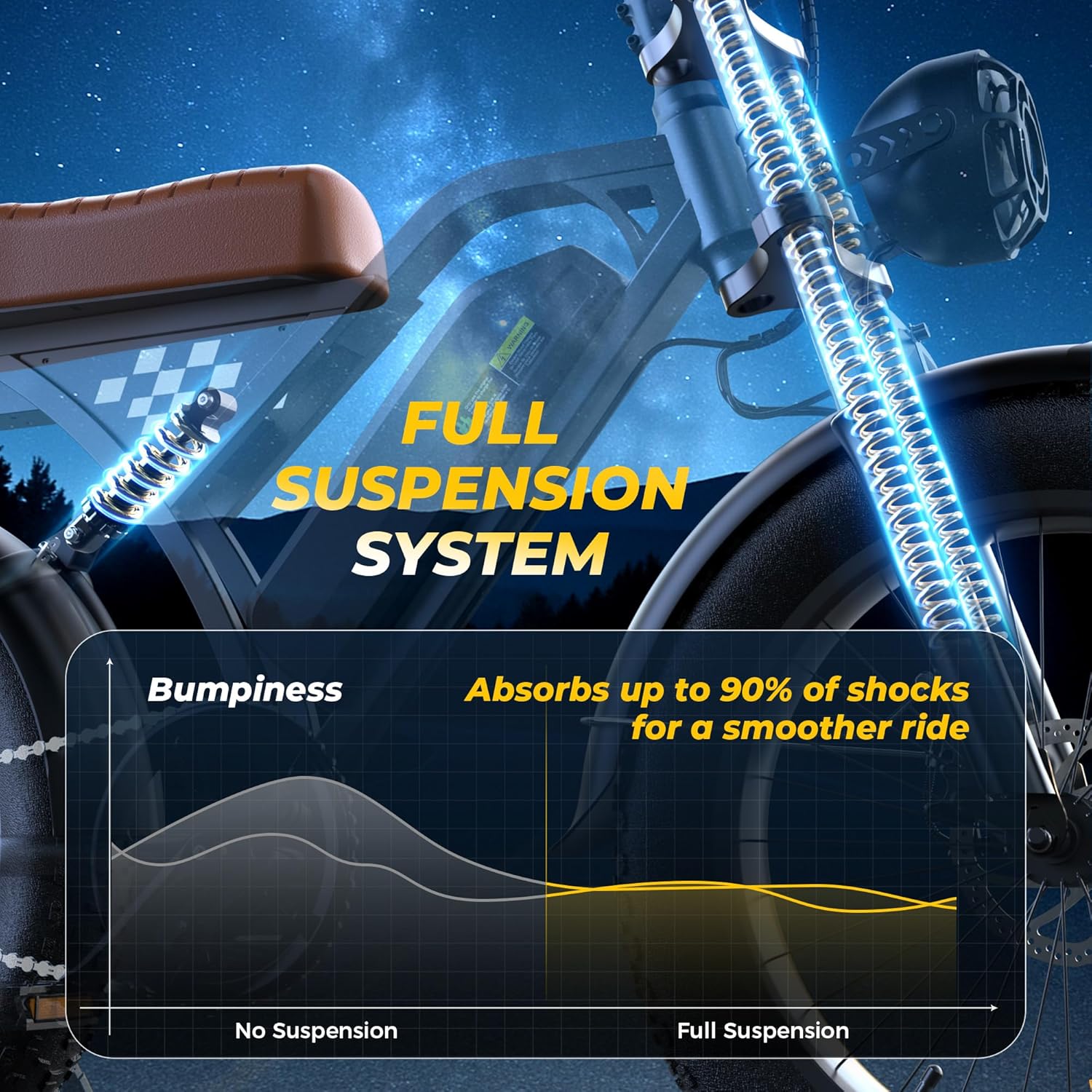 Off Road Electric Bike for Adults 16"/20" Fat Tire 1500W 55+ Miles Full Suspension Bright Headlight Long Seat 20mph Commuting Electric Dirt Bike Mountains EBike UL2849 Electric Motorcycle All-Terrain
