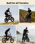 Electric Bike for Adults 1500W Peak 20" Tire Commuting Electric Mountain Bike 32KMH Range 240Km Dual Removable Battery Dual Suspension Electric Motorcycle Dirt Banana Seat Off Road with Extra Battery