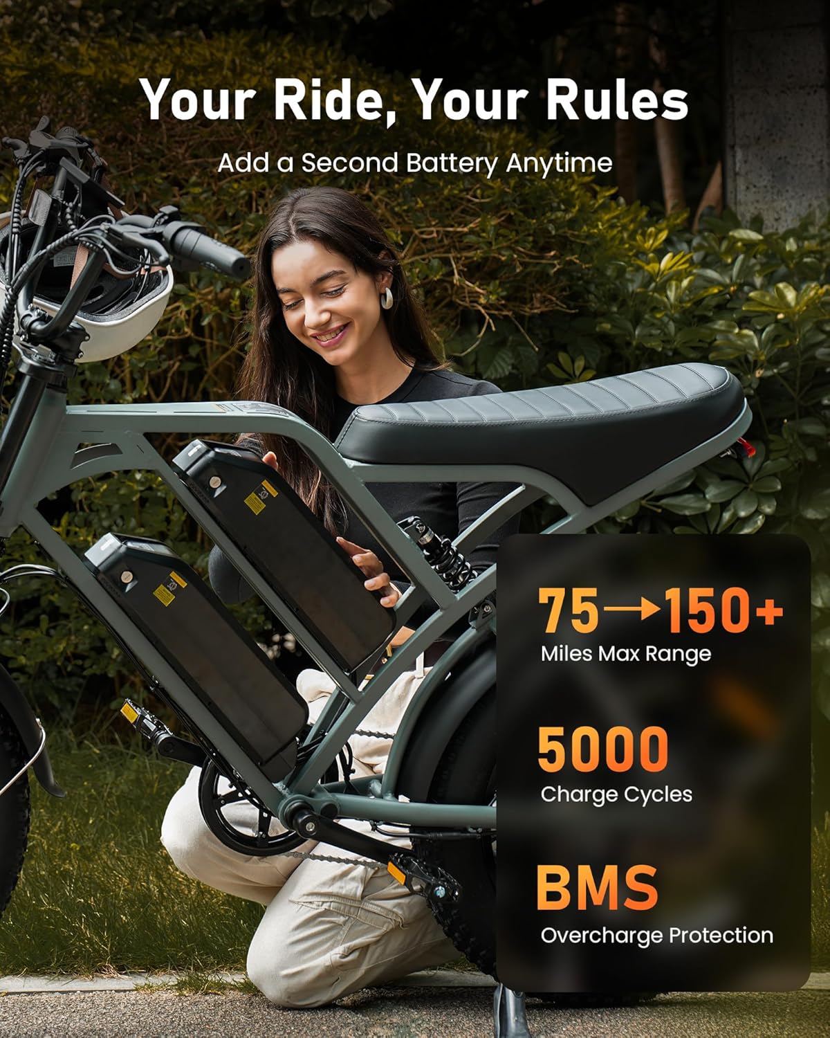 - 【Unmatched Riding Range】- CycHunter e-bike eliminates range anxiety for weekend adventures. The 48V 13Ah removable battery delivers 50 miles in pure electric mode and 75 miles in pedal-assist mode. Commuting, exploring, or tackling trails becomes effortless. The detachable battery offers flexible charging options, while 3-4 hours fast charging prepares you for the next journey.